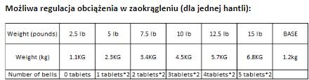 Technické informácie: Rozsah nastavenia jednej činky v kruhu pre: